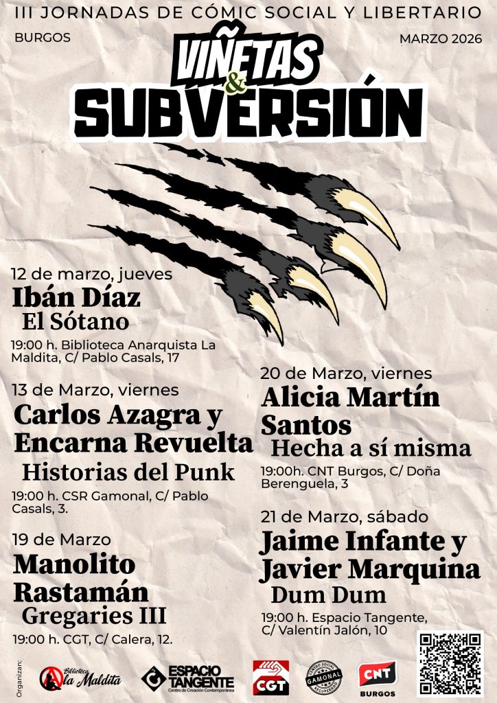 Viñetas & Subversión regresa con las III Jornadas de Cómic Social y Libertario de Burgos que se desarrollarán a lo largo del mes de marzo en diferentes espacios de la ciudad. Una buena oportunidad para acercarse al mundo del 9º Arte con vocación reivindicativa y espíritu crítico.